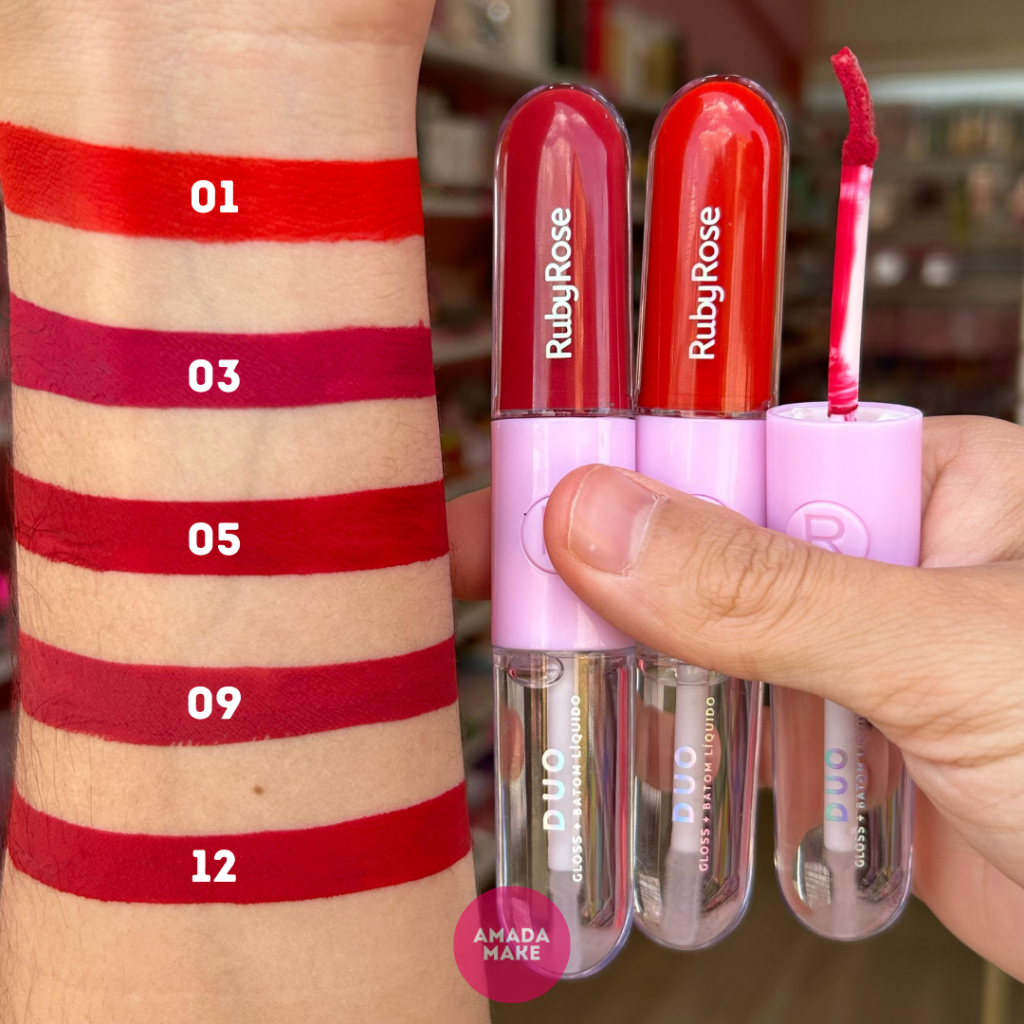 Meninaaaas, segura essa novidade que a Ruby Rose lançou e já conquistou meu coração! Sabe aquele produtinho que você olha e pensa: "Meu Deus, eu PRECISO disso na minha vida AGORA"? Pois é, esse é o novo Batom Duo com Gloss Líquido da Ruby Rose!