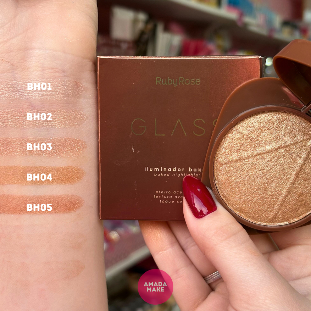 Amigas, se preparem para o brilho mais lindo e poderoso que vocês já viram: o Iluminador Baked Glass Ruby Rose! Ele chegou pra ser aquele toque de luz que te deixa radiante, sabe? É tipo um "glow" de milhões!
